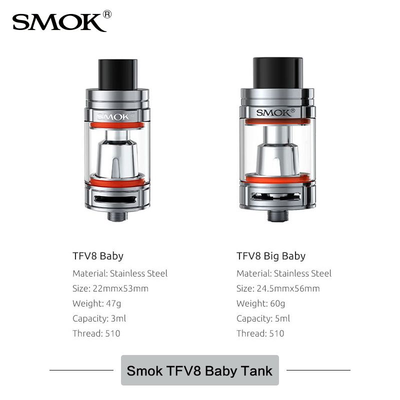 The baby Smok TFV8 made of stainless steel and pyrex glass can hold 3ml e juice the new Smoktech cloud beast tank with re-designed bottom pair air-slots air chamber and drip tip provide you with powerful draw effects. Steadfastly committed to manufacturing quality products at affordable prices SMOK is undoubtedly one of the leaders within the industry. If youre a dedicated cloud chaser always on the hunt for the best big clouds vaping has to offer then youre going to need a tank and coils that can make all your vapor dreams come true. SMOKTech TFV8 Baby Beast Sub-Ohm Tank SMOKTech is proud to introduce the SMOK TFV8 Baby Beast Sub-Ohm tank which is considered to be the smaller version of the original TFV8The TFV8 Baby Beast is now a slimmer 22mm diameter size and 30ml capacity tank. Its not that easy to choose the right smok v8 coils baby beast since theres a ton of things you need to consider first. Description SMOK TFV8 Baby Coils. TFV8 Big Baby is the enlarged version based on TFV8 Baby both its 5ml e-juice capacity and. The Smok Baby TFV8 Cloud Beast Tank is the mini version of TFV8 Atomizer. The V8 Baby-M2 is compatible with the SMOK Stick V8.