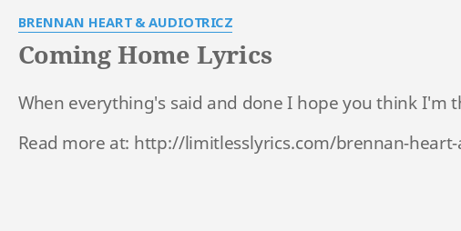 The official video for Coming Home ft CHRISTON by Brennan Heart AudiotriczDownload or stream here. Coming Home Galactixx Remix Lyrics. Christon Radio Edit by Brennan Heart Audiotricz chart history on Spotify Apple Music iTunes and YouTube. Read about Coming Home feat. Top Brennan Heart Lyrics Memento Push Play Evolution Of Style Get Wasted Cant Kill Us Lose My Mind Fifo. Brennan Heart - Coming Home Verse 1 When everythings said and done I hope you think Im the one that leads you to a better day Cause when nothing ever goes your way You hoping for someone to save you from those boring raining days Chorus But this is your life. Christon - Coming Home played by. Christon Brennan Heart Audiotricz. Lose My Mind Brennan Heart Wildstylez.