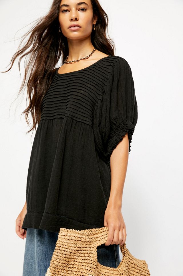 The Elise tunic exudes a romantic feel with puff sleeves and a detailed bodice Crew neck Short puff sleeves with elasticized cuffs Side vents Approx 325 length 72 cotton 28 linen Black. Can be worn as a top or dress depending on height Im 52 and its a little short as a dress for me. COCKTAIL. 72 cotton 28 linen. The brand offers a wide range of products from apparel think. Ruffle detailing accentuates this tunic by Free People for a casual flirty addition to your wardrobe. Similar products also available.